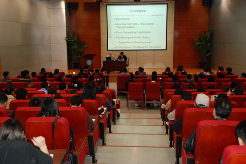 在本次来吉林大学讲学期间,布赞教授以“形成中的世界秩序:地缘政治与地缘经济的视角(Geopolitics and Geo-economics in the Emergent World Order)”为题作了精彩的学术报告,并与听众进行了长时间的互动,受到我校师生的热烈欢迎。此外,他还为我校国际关系专业的中国学生和留学生作了两场专题讲座,题目分别是“国际关系学的再思考:以19世纪全球转型为视角(Rethinking IR in the Perspective of the 19th Century Global Transformation)”和“英国学派:一种被忽视的国际安全研究理论(The English School: A Neglected Approach to International Security Studies)”。