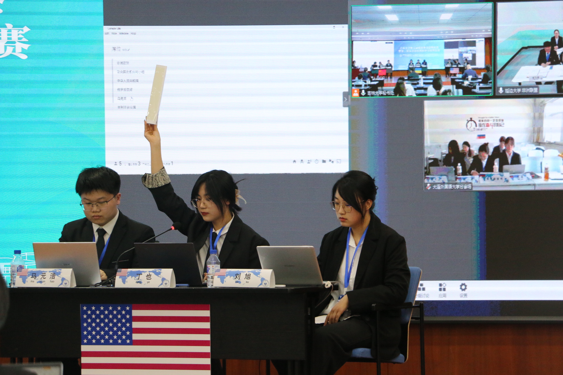 党委书记杨民,党委学生工作部副部长梅士伟,东北师范大学模联指导教师夏春晖等出席开幕式;吉林大学、东北师范大学参赛学生和指导教师在现场参加活动,大连外国语大学、延边大学、黑龙江大学等3所高校参赛学生和指导教师在线上分会场参加了活动。