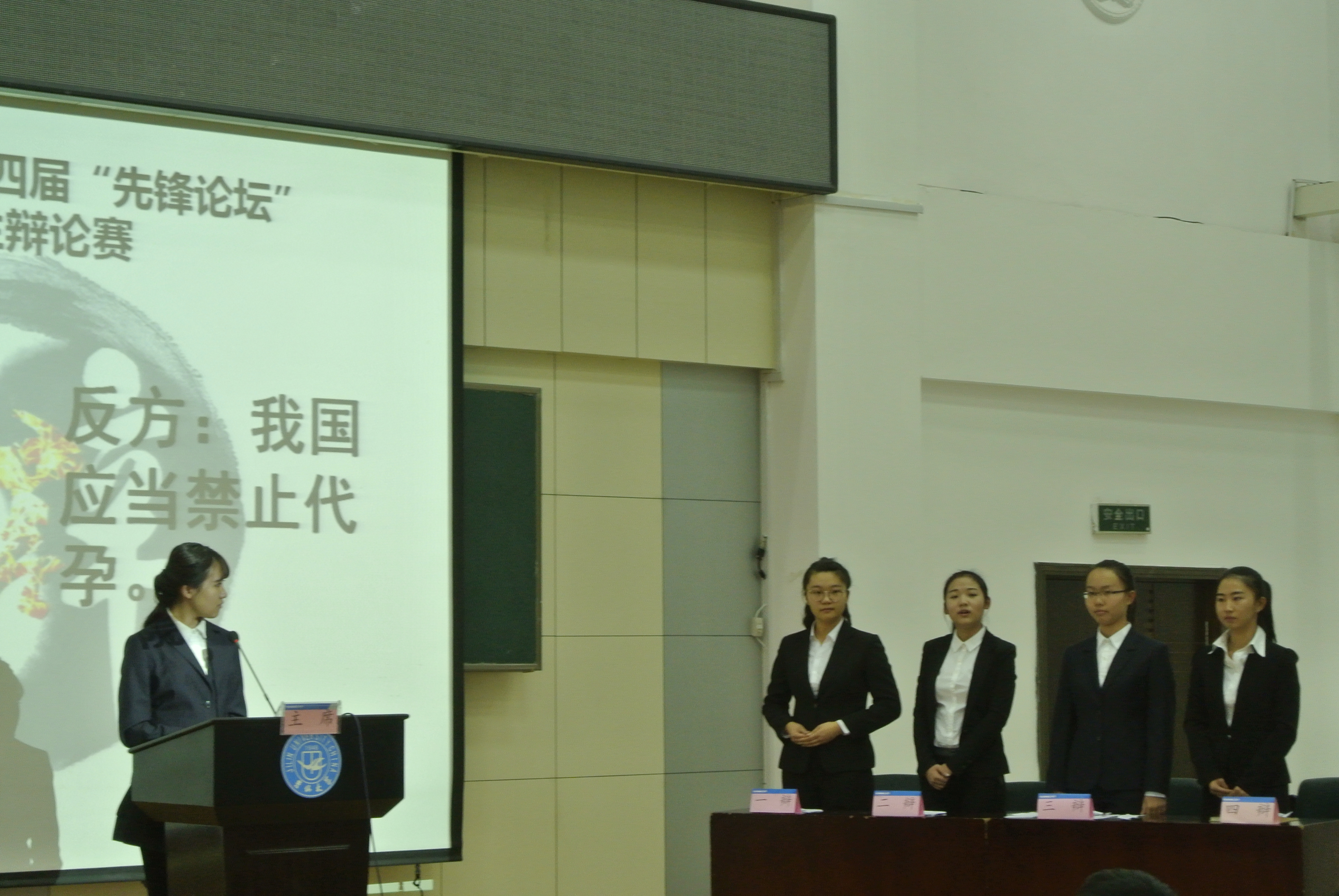 与行政学院展开了激烈的辩论。双方围绕“是否应该代孕”展开辩论。在思辨中,同学们另辟蹊径创新思维展露青春才华;在比赛中,同学们唇枪舌剑群英荟萃正道英雄本色;在总结时,双方辩友热情交流渴求新知尽显谦虚友好。