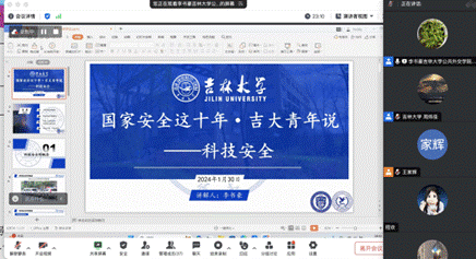 王家辉、白子谦、王俊翔等十五位本科生、研究生共同组成了“国家安全这十年——吉大青年说”社会实践团队,开展国家安全理论学习宣讲活动。该团队通过“线下调研+线上授课”两相结合的方式,为同学们讲授了一堂又一堂精彩纷呈又内涵丰富的“国家安全课”,使得“国家安全”这一重要理念深深地烙印在了众多青少年的心中。